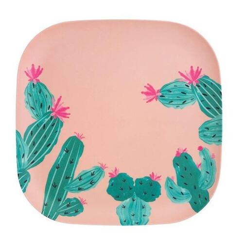 Prato Summer Cactus 20x20cm - Oxford Aproveitando as vantagens da fibra de bambu, que são a leveza e a segurança, a oxford dispõe de uma linha ideal para uso em áreas ao ar livre, como piscinas e jardins. São peças perfeitas para confraternizações com a família e amigos nestes locais. Os cactos viraram queridinhos das estampas e também estão decorando os itens de utilidades domésticas. Esses itens são ideais apenas para servir alimentos, não podendo ser utilizados para cortá-los. Os produtos feitos com fibra de bambu não podem ser aquecidos ou levados ao forno micro-ondas. No entanto, podem ser colocados na lava-louças porque a temperatura da água é menor do que a temperatura atingida no micro-ondas.