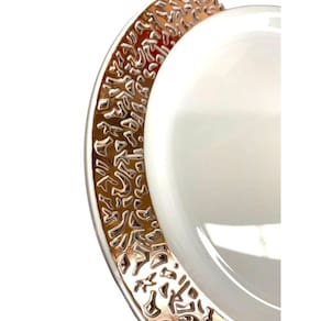 Feitos em plástico grosso de alta qualidade, esses pratos são super resistentes e laváveis, proporcionando praticidade e durabilidade. Com um diâmetro de 22,8cm, eles possuem tamanho ideal para servir seus convidados com elegância.
