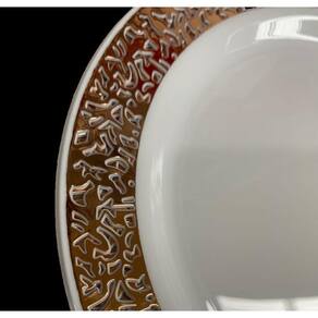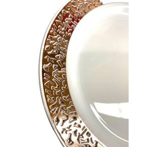 Além disso, esses pratos têm um design luxuoso com bordas vazadas na cor rose, que adicionam um toque de sofisticação à sua mesa. Seu acabamento em branco com detalhes nas bordas rose combina perfeitamente com a decoração natalina.