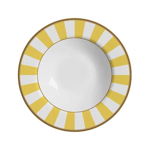 Conjunto de Pratos Fundo Stripe Amarelo Alleanza - 6 Unidades O Conjunto de Pratos Fundo Stripe Amarelo Alleanza é perfeito para elevar a apresentação das suas refeições e adicionar um toque de estilo e animação à sua mesa. Composto por 6 pratos fundos de 25cm de diâmetro, esse conjunto oferece versatilidade para atender a diversas necessidades de refeições e ocasiões. Cada prato apresenta o design Coup, conhecido por suas formas arredondadas e elegantes, proporcionando uma estética atemporal e expressão de sofisticação. Além disso, os pratos são decorados com um amarelo deslumbrante, que transmite alegria e vitalidade, perfeito para dar destaque à sua mesa. Fabricados com cerâmica de alta qualidade, esses pratos são resistentes e duráveis. A cerâmica mantém a temperatura dos alimentos, garantindo que suas refeições estejam sempre na temperatura perfeita. Além disso, cada prato possui um acabamento acetinado que realça sua elegância, adicionando um toque de sofisticação a cada refeição. Este conjunto faz parte da coleção Alleanza, conhecida por sua excelência na criação de produtos de cerâmica que unem beleza e funcionalidade. Os Pratos Fundo Stripe Amarelo Alleanza são a escolha perfeita para aqueles que buscam uma mesa sofisticada e desejam adicionar um toque de estilo e animação à experiência gastronômica. Garanta agora mesmo o Conjunto de Pratos Fundo Stripe Amarelo Alleanza e transforme suas refeições em momentos especiais! Características Principais: - Conjunto com 6 pratos fundos de 25cm de diâmetro - Design Coup elegante e sofisticado - Cor amarela vibrante para dar destaque à sua mesa - Acabamento acetinado que realça a elegância dos pratos - Fabricados com cerâmica de alta qualidade e resistência - Mantém a temperatura dos alimentos - Faz parte da coleção Alleanza, conhecida por sua excelência em produtos de cerâmica 1. Qual a quantidade de pratos que vem no conjunto? R: O conjunto contém 6 pratos fundos. 2. Qual o tamanho dos pratos? R: Cada prato possui um diâmetro de 25cm. 3. Os pratos podem ser levados ao micro-ondas? R: Sim, os pratos podem ser levados ao micro-ondas. 4. Os pratos podem ser lavados na lava-louças? R: Sim, os pratos são adequados para uso em lava-louças. 5. Os pratos são refratários? R: Não, os pratos não são refratários. 6. Qual a do produto? R: O produto possui de 90 dias por defeito de fabricação e 1 ano para gretamento. Transforme suas refeições em momentos especiais com o Conjunto de Pratos Fundo Stripe Amarelo Alleanza. Garanta já o seu! Marca: Não Informado