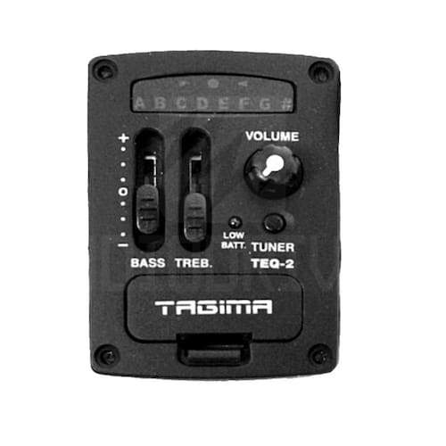 O Tagima TEQ-2 é um Pré Amplificador para Ukuleles. Seja como reposição ou upgrade de um pré amplificador antigo do seu violão, o Tagima TEQ-2 é uma ótima solução. Possui um equalizador de 2 bandas com controle de Grave e Agudo, knob de volume, Luz de led que indica quando a bateria estiver baixa, além de um afinador cromático digital embutido bastante preciso com tela LCD