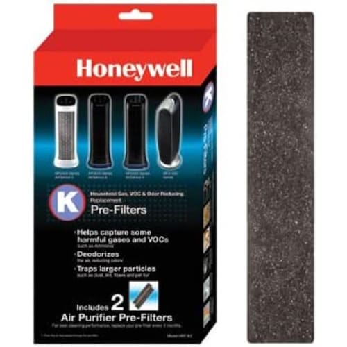 2 pacotes de pré-filtros K de substituição Honeywell Purificador de ar ajudam a desodorizar e capturar alguns gases domésticos comuns. Serve para muitos modelos, incluindo: HFD300, HFD310, HFD320, HFD323-TGT, HFD-120-Q e mais. - Desodoriza o ar e reduz odores - Ajuda a absorver alguns gases e vapores comuns de COV domésticos - Captura partículas maiores, como poeira, fiapos, fibras e pelo de animais de estimação - Para melhor desempenho, substitua a cada 3 meses - Serve para modelos HFD-120QC, série HFD310