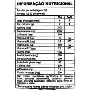 Fórmula pré-treino avançada para aumentar energia e foco Mistura exclusiva para melhorar o desempenho durante o treino Aumenta a resistência e a força muscular Contém ingredientes selecionados para maximizar a vascularização e a bomba muscular Sem adição de açúcar e baixo teor de calorias Sabor amarelo refrescante e delicioso Embalagem conveniente de 300g, fácil de transportar e usar