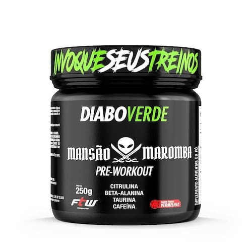 diabo verde mansão maromba pre-workout frutas vermelhas 250g - ftw o pré treino do shape inexplicável deixe seu treino poderoso com o novo pre-workout mansão maromba, o pré treino do toguro com 200mg de cafeína, em sua composição encontramos aminoácidos não essenciais como beta-alanina e a taurina. A ftw saiu na frente das outras marcas e inovou na fórmula desse produto adicionando citrulna em sua composição. Agora com 02 sabores incríveis e essa composição única fica difícil inventar desculpas para não atingir os seus objetivos