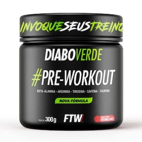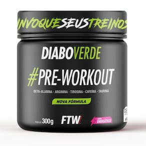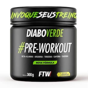 Pré-treino Diabo Verde Pre-Workout (300g) FTW: suplemento em pó que aumenta energia, foco e resistência durante os treinos. Contém cafeína, beta-alanina, L-arginina e taurina. Indicado para atividades físicas de alta intensidade, consumido 20-30 minutos antes do exercício.