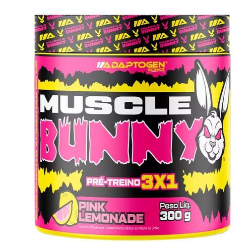 Pré Treino Muscle Bunny C/300g - Adaptogen Sabor Pink Lemonade O Pré Treino Muscle Bunny sabor Pink Lemonade é ideal para quem busca aumentar o desempenho durante os treinos, com uma fórmula potente que combina cafeína, beta-alanina e taurina. Ele oferece energia imediata, melhora o foco e a resistência, ajudando a alcançar melhores resultados em suas atividades físicas. Além disso, seu sabor refrescante de Pink Lemonade torna a experiência ainda mais agradável. Características: Peso líquido: 300g. Sabor: Pink Lemonade. Não contém glúten. Embalagem prática em pote. Tamanho da porção: 10g. Ingredientes principais: maltodextrina, beta alanina, taurina, cafeína, extrato de casca de laranja amarga, hibisco, chá verde. Benefícios: Aumenta os níveis de energia para treinos mais intensos. Melhora o foco e a concentração durante a atividade física. Potencializa a resistência muscular e a performance. Auxilia na e no aumento de força. Sabor refrescante de Pink Lemonade, tornando o consumo agradável. Não contém glúten, adequado para dietas restritivas. Compre Agora Pré Treino Muscle Bunny C/300g - Adaptogen Sabor Pink Lemonade Com o Pré Treino Muscle Bunny, você ganha mais disposição e energia para superar seus limites. Prepare-se para treinos mais intensos e focados, com o sabor delicioso de Pink Lemonade Marca: Não Informado Ean: 7893095686784