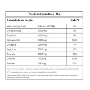 Com Creatina: Sabemos o quanto a creatina é essencial para melhorar o desempenho e a força durante o treino. Por isso, adicionamos este componente à nossa fórmula, garantindo que você obtenha todos os benefícios necessários para potencializar seus resultados.