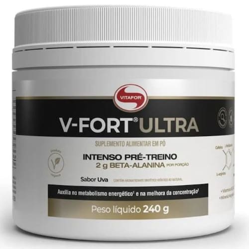 O pré- treino V-Fort é uma fórmula revolucionaria que tem uma sinergia perfeita de ingredientes que fornece energia explosiva, resistência aprimorada durante o treino. Sua fórmula única, desenvolvida pela Vitafor, fornece um aumento da disposição física. Sugestão de uso: