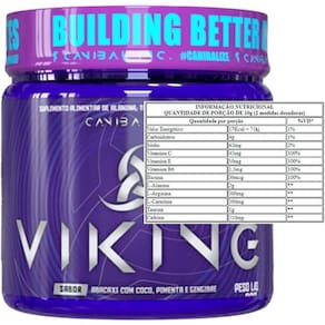 VIKING é o pré treino para aqueles que querem algo mais no seu treino. Para você guerreiro do dia-a-dia, que arruma um tempo livre para ir para academia como uma forma de terapia e cuidando da saúde, com o viking você irá dar o máximo de si, com sua fórmula única composta de: l-alanina, arginina, cafeína, taurina, l- carnitina, pimenta e gengibre.