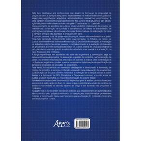 Este livro se destina aos profissionais que atuam na formação de propostas de preços de bens e serviços singulares, especialmente na indústria da construção civil, sejam eles engenheiros, arquitetos, administradores, contadores, economistas. A obra também visa contribuir para professores dos cursos de graduação e pós-graduação disporem e discutirem as metodologias consideradas no conteúdo.
