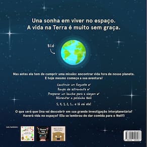 Una acha a Terra muito sem graça e sonha com uma vida no espaço. Seu foguete está pronto para decolar e levar a pequena astronauta por uma incrível aventura pelo sistema solar. Podemos partir?! 5, 4, 3, 2… 1! Nossa heroína Una, uma garota muito esperta, é fascinada pelo espaço sideral. Seus bolos de aniversário são intergalácticos, e até seu peixinho dourado, o Neil, tem nome de astronauta. Em busca de uma aventura, ela projeta e constrói sozinha um traje espacial e, com as coisas que tem na garagem, cria um foguete para levá-la a uma busca de vida entre as estrelas. Depois de muito explorar e conhecer os planetas da Via Láctea, Una avista ao longe um orbe azul cintilante. A maior descoberta dessa pequena e destemida astronauta não é uma espaçonave alienígena ou um cometa inesperado, mas sim entender o caráter único deste nosso lar, o planeta Terra, e a importante missão que todos temos de preservá-lo. Acompanhando a sua viagem, o leitor se encantará com o maravilhoso mundo do espaço sideral e os novos aprendizados de Una. Eleito um dos melhores livros infantis do ano de 2021 pelo Children’s Book Council da Austrália, finalista dos prêmios australianos Wilderness Society Environment Award for Children’s Literature, 2021, e Educational Publishing Awards 2021. Indicado para leitores a partir de 6 anos.