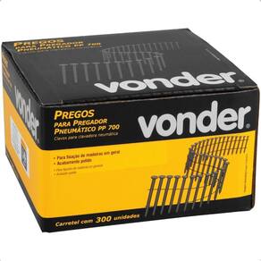 Com um peso aproximado de 0,77 kg, o carretel com 300 pregos proporciona excelente rendimento e praticidade, sendo ideal para profissionais que buscam alta produtividade sem abrir mão da qualidade. Embora seja indicado para o PP 700 da Vonder, também pode ser em outros modelos de pregadores pneumáticos, desde que as dimensões sejam compatíveis.