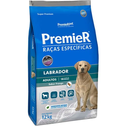 Ração Premier Raças Labrador Adulto - 12kg- Saúde intestinal: através da combinação de ingredientes de alta digestibilidade, fibras especiais e prebióticos; - Pelagem exuberante e pele saudável: rico em proteínas de alta qualidade, equilíbrio ideal de ácidos graxos essenciais - ômegas 3 e 6; - Nutrição específica: controle do peso pela redução de calorias e L-carnitina, e suporte articular pela associação exclusiva de B-Glucano purificado, EPA, DHA, condroitina e glicosamina.