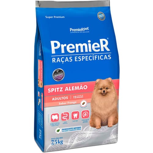 Ração Premier Cães Raças Spitz Alemão Adultos - 1kg - Odor e volume das fezes reduzidos; - Pelagem bonita e pele saudável através de ácidos graxos essenciais ômegas 3 e 6, biotina e zinco; - Nutrição específica: suporte articular pela associação de B-Glucano purificado, condroitina e glicosamina; - Saúde intestinal: através da combinação de ingredientes de alta digestibilidade, fibras especiais e prebióticos; - Saúde oral: contém hexametafosfato de sódio, importante ingrediente para a prevenção da formação do cálculo dental.