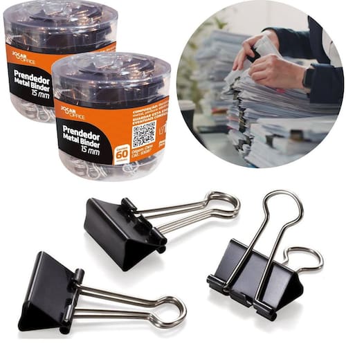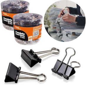 Organize seus documentos com praticidade e segurança O prendedor binder 15mm da Jocar Office é ideal para uso em escritórios, escolas ou em casa. Com excelente fixação, mantém folhas e papéis agrupados sem perfurar ou danificar. Este kit com 120 unidades na cor preta é perfeito para quem precisa de organização eficiente e duradoura no dia a dia.