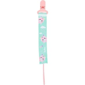 Características Técnicas: Idade recomendada: a partir de 3 meses Cor predominante: rosa Estampa: unicórnio Composição: Alça - 100% Poliéster, Prendedor - 100% Polipropileno PP e Cordão - 100% Poliamida Clipe com trava