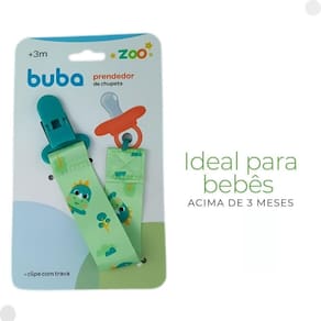 O Prendedor de Chupetas Buba com Cordão Animal Fun é de cor verde, uma cor que agrada tanto aos pequenos quanto aos pais. O design de dino adiciona um toque de diversão e fantasia, tornando-o um acessório que o seu bebê vai adorar usar.