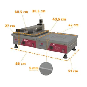 - Medidas da prensa: 40cm L x 30,5cm P;