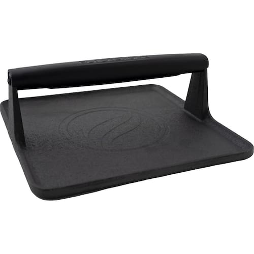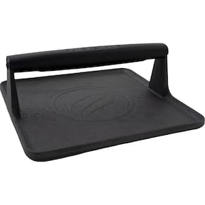 Prensa para parrilla Blackstone 5554 precocida, base extra ancha XL de hierro fundido resistente para carne, hamburguesa, tocino, bistec y salchicha. Mango resistente al calor de 10” x 10” x 4” (cuadrada), color negro. - Diseñada para comodidad (fácil de usar y limpiar): Mereces perfección tanto durante como después de cocinar. Nuestra prensa grande para parrilla toma apenas un minuto o menos después de usarla. Limpia con un paño húmedo para mantenerla impecable. Con Blackstone, la limpieza nunca es un problema. - Mango de goma suave para agarre cómodo: Disfruta las reuniones mientras cocinas. Nuestro set incluye un mango de goma de calidad para un agarre firme, sin deslizamientos ni movimientos indeseados, asegurando una cocción sin inconvenientes. - Base de hierro fundido para resultados perfectos: La prensa Blackstone está fabricada con hierro fundido resistente, diseñado para soportar altas temperaturas y distribuir el peso uniformemente, sellando los sabores que tanto te gustan. Su fórmula antiadherente y libre de químicos garantiza comida saludable y deliciosa cada vez. - Presión equilibrada para sellar sabores y cocinar rápido: Con un tamaño de 25 x 10 x 25 cm y un peso de aproximadamente 3.2 kg, esta prensa permite cocinar varias hamburguesas al mismo tiempo, logrando una cocción rápida y pareja. - Ranuras en la parte inferior para un grillado perfecto: Las ranuras en la base logran un grillado profesional en bacon, salchichas y hamburguesas, asegurando resultados perfectos en cada uso.