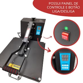 Prensa térmica sublimação de alta qualidade, com painel para controle de temperatura e de tempo. Equipamento profissional para sublimação de materiais em poliéster, PP, malha fria, algodão, borracha e plástico. Com ela você pode personalizar camisetas, tecidos, almofadas, chinelos e muito mais. A vantagem desta prensa é o tamanho da sua área de impressão, além de oferecer muito mais qualidade e nitidez das imagens em seus trabalhos. Com ela você pode trabalhar em sua própria casa ou em shoppings, feiras, eventos e mais.