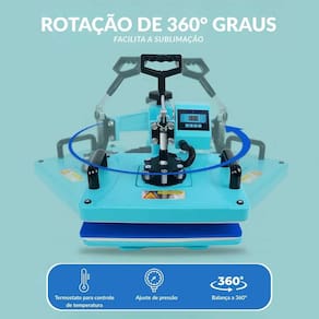 A solução ideal para quem busca versatilidade, praticidade e qualidade em trabalhos de sublimação e personalização. Com potência de 900W, proporciona aquecimento rápido e temperatura estável, garantindo estampas nítidas, duráveis e com excelente acabamento.