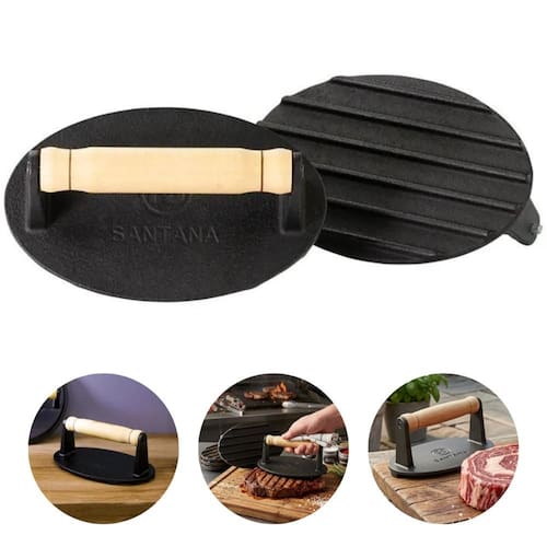 Assim como outros utensílios de ferro da marca, o prensador possui acabamento revestido com óleo 100% vegetal, obtido por meio de um processo natural e livre de produtos químicos. Indicado para preparo de carnes, pães e outros alimentos grelhados em bares, restaurantes, churrascarias, lanchonetes e também para uso doméstico.