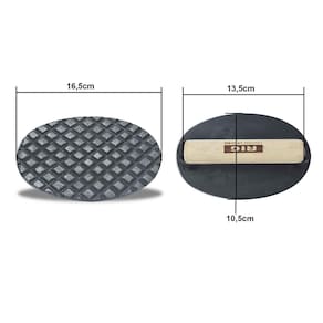Prensador de bife hamburguer artesanal ferro fundido premium Prensador de bife premium Todas as caracteristicas estão na imagem 2 Feito de ferro fundido de alta qualidade para durar muito mais Não solta residuo na carne. Produto de cuidado com o manuseio. Marca: General Couros