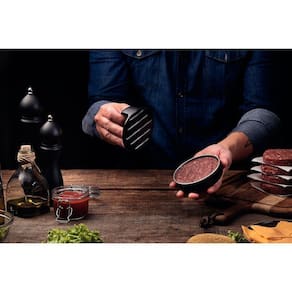Ideal para fazer hambúrgueres de carne bovina, frango, porco ou vegetais.Praticidade para moldar seu hambúrguer.Prensador de polipropileno. Base para molde de aluminio com revestimento interno e externo de antiaderente Starflon. Pode ir à máquina de lavar louças facilitando seu dia a dia.