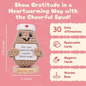 Procurando o presente perfeito para mostrar apreço à enfermeira em sua vida; a Batata Positiva para Enfermeiras está aqui para iluminar o dia com afirmações edificantes e um toque de humor; esta adorável boneca de crochê não é apenas uma decoração fofa; é uma dose diária de positividade; projetada para lembrar as enfermeiras de sua força, compaixão e dedicação. Cada batata Positive vem com 30 peças intercambiáveis. placas; cada uma com um Mensagem única e sincera criada especificamente para enfermeiros; de afirmações alegres a encorajamento alegre, esses sinais oferecem uma variedade de frases para elevar e motivar; seja durante um turno agitado ou uma pausa muito necessária; graças a um pequeno ímã, trocar os sinais é rápido e fácil; permitindo que eles escolham a mensagem perfeita para qualquer humor. Feito à mão com crochê macio de algodão, o Positive Pottive ato é projetado para ser Um companheiro aconchegante e charmoso; tem o tamanho ideal para sentar em uma mesa, em um armário ou em uma mesa de cabeceira; espalhando sorrisos onde quer que vá; cada boneca também vem com um pequeno suporte de madeira e chega em uma caixa lindamente temática pronta para presente; não há necessidade de embrulho extra; está tudo pronto para surpreender e encantar. A Batata Positiva para Enfermeiras é um presente atencioso para qualquer ocasião; seja você procurando presentes de Natal, meia enchimentos para enfermeiras, ou um símbolo significativo de apreciação para aniversários, Semana de Apreciação da Enfermeira, ou apenas porque; este pequeno batata certamente trará um sorriso; seu design divertido e mensagens edificantes o tornam uma maneira perfeita de dizer obrigado por tudo o que você faz. Mostre às enfermeiras em sua vida o quanto elas significam com a Batata Positiva; um pequeno presente que causa um grande impacto; um sorriso para a time - Presente positivo de enfermeira de batata – Presentes de enfermeira atenciosos para mulheres, ideais para presentes de enfermeira, presente de enfermeira e estudantes de enfermagem, uma escolha perfeita para estudantes de enfermagem, acessórios de enfermagem para enfermeiras e presentes de enfermeira, também ótimo como presentes CNA, presentes de escola de enfermagem e presentes de enfermeira NICU, uma maneira única de mostrar apreço por presentes CNA para mulheres e profissionais de saúde trabalhadores - Afirmações de enfermeira edificantes – Projetado para presentes engraçados de enfermeira, com 30 mensagens positivas, presentes perfeitos de aposentadoria de enfermeira para mulheres, adiciona charme à decoração de enfermeiras, ótimo para decorações de escritório de enfermagem, presentes de enfermagem indispensáveis para enfermeiros, edificantes para qualquer enfermeiro, maravilhoso para presentes de estudante de enfermagem, ideal para enfermeiros escolares, um presente significativo para enfermeiras, presentes de enfermagem e todos os profissionais de saúde - Presentes de enfermeira pequenos feitos à mão – Presentes adoráveis de enfermeira a granel, presentes maravilhosos para preceptores de enfermagem, criados para presentes de enfermagem, presentes ideais para estudantes de enfermagem, presentes de apreciação de enfermagem atenciosos, presentes perfeitos para enfermeiros para mulheres, excelentes presentes de graduação de enfermagem, presentes de graduação de enfermagem exclusivos, presentes de graduação de enfermagem atenciosos para mulheres, ótimo para presentes de enfermeira escolar, inspirador futuro enfermeiro - Sinais motivacionais fáceis de trocar – Presentes perfeitos para enfermeiros em massa, um item essencial para presentes de semana de enfermagem, edificantes para enfermeiras registradas, presentes encantadores de enfermeira para estudantes de enfermagem, presentes de agradecimento sinceros para enfermeiras, presentes de enfermeira ideais para mulheres, brindes encantadores de festa de enfermeira, presentes de apreciação de enfermeiros em massa, ótimo para presentes de preceptor de enfermagem, encorajamento para oncologia enfermeira, enfermeira fofa única acessórios se - Embalagem pronta para presente para qualquer ocasião – Uma decoração especial de festa de graduação de enfermeira, presentes de enfermagem perfeitos para estudantes de enfermagem, presente legal ideal para enfermeiras, presente divertido para enfermeiras, presentes de enfermeira registrados, uma adição única para acessórios de enfermeira, um presente de decoração indispensável para enfermeiras, perfeito para a semana de apreciação da enfermeira, atencioso para presentes de estudante de enfermagem, um ótimo presente de enfermeira escolar