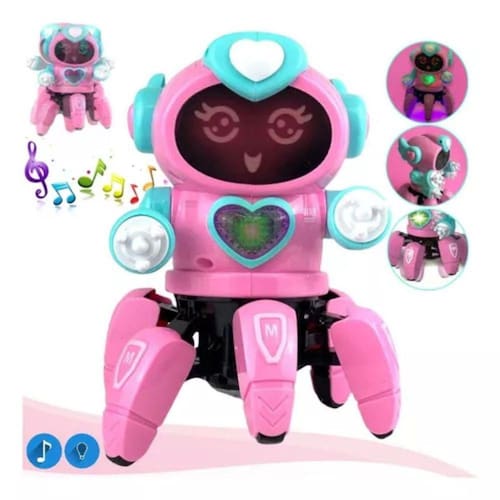 Presente de Natal para Meninos e Meninas Rosa Barato Robô Aranha Som e Dançarino com Luzes Brinquedo e Movimento