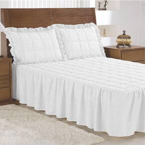 Presente Dia Das Mães Colcha Lese Casal Padrão 05 Peças - Branca Produto 100% fabricado no brasil - valorize nossa industria Colcha lese casal padrão com babado 03 peças Utilizamos matérias-prima de excelente qualidade que resistem à processo de lavagem, mantendo a beleza e durabilidade do produto. Contém na embalagem: 01 colcha casal padrão 2,50m comprimento x 2,30m largura 02 porta travesseiros: 70cm comprimento x 50cm largura 02 refil 60cm comprimento x 45cm largura Composição colcha: Tecido superior lese: 67% poliéster - 33% algodão Enchimento: 100% poliéster Tecido inferior: 100% poliéster Composição refis: Tecido: 100% polipropileno Enchimento: 100% poliéster atenção: a foto apresentada no anuncio pertence ao nosso atelier, é a foto do produto cuidado com as falsificações As cores podem mudar de acordo com o monitor. fique atento à descrição do produto.