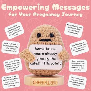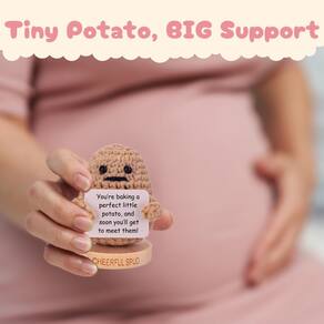 Celebre a emocionante jornada da gravidez com um presente que é atencioso e adorável: a edição Cheerful Spud Pregnant Mom. Esta pequena boneca de crochê de batata é projetada para trazer sorrisos, incentivo e um toque de diversão para a vida de qualquer mãe grávida. Seja para um chá de bebê, revelação de gênero ou simplesmente como uma forma de mostrar seu apoio, esta batata encantadora é a maneira perfeita de homenagear a futura mamãe e sua família em crescimento. A edição Cheerful Spud Pregnant Mom apresenta 30 placas trocáveis, cada uma com uma mensagem única feita sob medida para inspirar e elevar as mães grávidas. De palavras de incentivo a notas alegres, essas mensagens são um lembrete diário de que ela está mais do que pronta para a jornada à frente. Com mãos magnéticas que facilitam a troca de sinais, este presente é tão interativo quanto significativo. O suporte de madeira incluído oferece uma base estável, o que o torna uma adição agradável a qualquer casa, berçário ou espaço pessoal. A entrega de presentes é simplificada com a embalagem pronta para levar da Cheerful Spud. A caixa de presente lindamente projetada elimina a necessidade de embrulho extra, para que você possa se concentrar na alegria de dar. Seja você um amigo, membro da família ou colega de trabalho, este presente exclusivo certamente deixará uma impressão duradoura. É a escolha perfeita para chás de bebê, anúncios de gravidez ou apenas como uma doce surpresa durante a gravidez. Seja sua irmã, filha, amiga ou colega de trabalho, este presente ressoará com qualquer mãe grávida, oferecendo incentivo e alegria. Celebre a beleza da gravidez com a edição Cheerful Spud Pregnant Mom - um presente exclusivo que homenageia sua força e amor. - The Positive Spud – Presentes perfeitos para mulheres grávidas – Celebre a jornada da maternidade com esta batata positiva de crochê; uma escolha ideal para a mãe ser um presente que traz incentivo, positividade e um pouco de humor; perfeito para adicionar alegria a qualquer chá de bebê - Cartões de afirmação atenciosos para futura mamãe – cada uma das 30 placas intercambiáveis oferece mensagens edificantes criadas para gestantes; projetado para inspirar e apoiar, tornando-o uma adição cuidadosa a qualquer presente para mulheres grávidas ou vale-presente revelador de gênero - Batata de crochê positiva feita à mão para grávidas – Feita de crochê de algodão macio e de alta qualidade, esta batata positiva é uma maneira única de mostrar carinho e amor; ideal como um presente para a mamãe que traz charme e positividade ao seu espaço - Troque facilmente mensagens encorajadoras – Com 30 cartões de afirmação anexados com um pequeno ímã, esta batata positiva permite que a futura mamãe escolha a mensagem que melhor se adapta ao seu humor; um presente encantador para celebrações de chá de bebê e muito mais - Embalagem pronta para presente para ocasiões especiais – Inclui um suporte de madeira e chega em uma caixa lindamente temática; esta batata positiva é o presente ideal para chá de bebê ou mamãe, oferecendo estilo e significado em um pacote pronto para presente