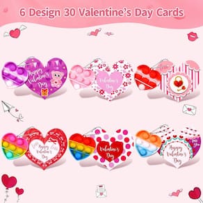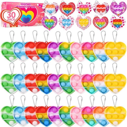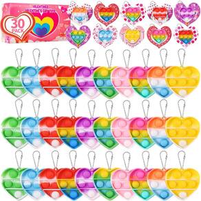💖 30 pacotes de presentes de Dia dos Namorados com chaveiro Heart Pop Fidget, brinquedos sensoriais, presente de Dia dos Namorados a granel para lembrancinhas escolares em sala de aula, mini Pop Bubbles Class Exchange, cartões-presente para meninos, meninas e crianças pequenas