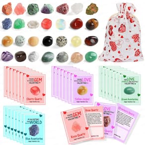 -?Conjuntos de presentes de Dia dos Namorados?28 cartões comemorativos de rock para o Dia dos Namorados (7 estilos de cartões de Dia dos Namorados, 4 peças de cada estilo) e 28 estilos de pedras de cristal, rochas e minerais (cada um é diferente), com 28 bolsas transparentes. Dê às crianças presentes exclusivos de Dia dos Namorados e faça com que se tornem pequenos colecionadores de pedras.