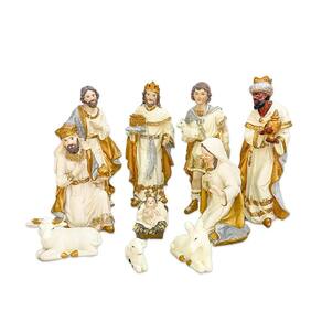 Presépio Completo 10 Peças Resina Dourado Enfeite Natal