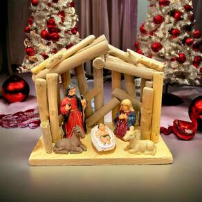 Descrição do produto : " Adicione um toque especial à sua decoração natalina com este encantador presépio de madeira e resina, ideal para quem busca uma peça compacta e cheia de detalhes. Com 15 cm de altura e 13 cm de largura, ele é perfeito para prateleiras, mesas ou até mesmo como presente. Especificações • Marca: Christinas • Cor: Marrom • Material: Madeira, MDF e Resina • Dimensões[LxAxP]: 15x7x13cm aproximadamente Itens Inclusos: • 01 Presépio Resina : "