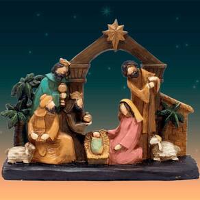 Características Gerais do Produto: - Material: Resina - Modelo: Presépio - Cor: Colorido - Dimensões aproximadas: Altura 17cm X Largura 22cm x Comprimento 6cm Garantia: - Garantia contra danos no transporte