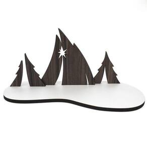A base do presépio é feita de MDF e possui 25 cm de comprimento. Ela proporciona uma base sólida e estável para as peças, garantindo que elas fiquem bem posicionadas e seguras.
