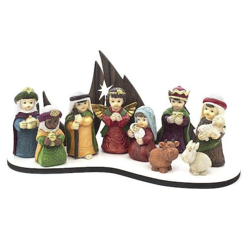 Kit Presépio Infantil Importado Resina 9 Peças 9 cm Base MDF