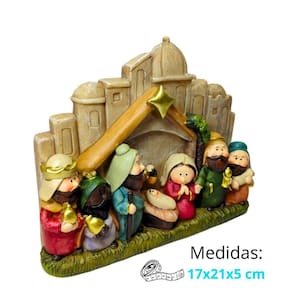 - modelo: presépio de natal - material: resina - peso: 0,525 g - tamanho: 23 cm x 4 cm x 18 cm - produto compacto - designer atrativo e divertido - inclui 8 peças estilo cartoon - pintura à mão - maior durabilidade - decoração natalina