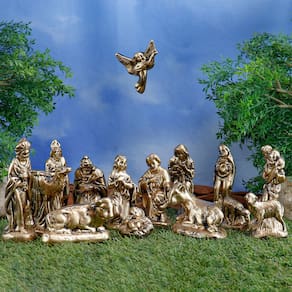 Presepio Natalino 10cm Enfeite 15 peças Gesso Celebre o Natal com este maravilhoso Presépio! O presépio é a representação do nascimento de Jesus, e tê-lo em sua casa trás mais esperanças ao ambiente. Composto por peças únicas e detalhadas, transformando o incrível momento em pequenas miniaturas. Ficha Técnica do Presepio Natalino Material: gessoGarantia: 3 mesesMarca: Odorizzi DecoraçõesCor: douradoPeso aproximado: 3,5kgDimensões aproximadas do produtoJosé: 9cm altura x 6cm largura x 6cm comprimentoMaria: 8cm altura x 5cm largura 5cm comprimentoMenino Jesus:3cm altura x 3cm largura x 5cm comprimentoAnjo: 8cm altura x 5cm largura x 2cm comprimentoBurro: 5cm altura x 8cm largura x 4cm comprimentoBoi: 6cm altura x 8cmlargura x 5cm comprimentoCamelo: 8cm altura x 6cm largura x 3cm comprimentoOvelhas: 4cm altura x 5cm largura x 3cm comprimentoPastor: 10cm altura x 4cm largura x 4cm comprimentoReis em pé: 10cm altura x 4cm largura x 5cm comprimentoReis agachados: 8cm altura x 6cm largura x 7cm comprimentoO que o produto acompanha?- 15 peças do Presépio Italiano Embalagem ReforçadaImagens meramente ilustrativasEnvio imediato após confirmação do pedido Sobre a Odorizzi:Há mais de 20 anos no mercado, a Odorizzi Decorações transforma os lugares de maneira mais sofisticada e aconchegante, com produtos de alta qualidade, buscando sempre superar as expectativas criadas pelos clientes.