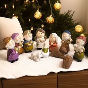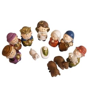 Inclui 11 peças essenciais para a montagem da cena: Maria, José, Menino Jesus, Anjo, os Três Reis Magos, o pastor e três animais.