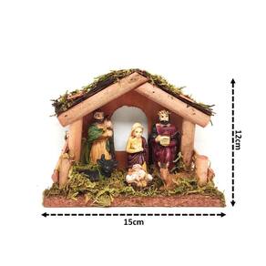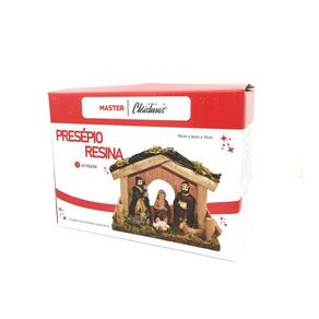 01 Presépio Resina Premium Manjedoura Madeira 15cm 6 Figuras - Master Christmas