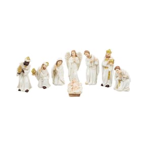 Com 8 peças e a peça mais alta medindo 7,5cm de altura, esse presépio é composto por: Menino Jesus não removível da manjedoura, Maria, José, pastor, os 3 magos Melquior, Baltazar e Gaspar, anjo, boi, ovelha e burro. Todas as peças possuem tamanhos proporcionais à peça mais alta, garantindo um visual equilibrado e encantador.