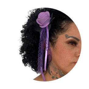 Presilha broche flor e.V.A preto roxo com fita 1und fantasia contém: 1 unidade composição: e.V.A, tnt, fitas de cetim e rendas medidas aproximadas: 8cm x 23cm cores: roxo e preto atenção: imagem meramente ilustrativa. Pode ocorrer mudanças no tom da cor da tela do celular/pc para o produto real ou mudanças na embalagem do produto sem aviso prévio por parte do fabricante. Marca: Não Informado Ean: 7898623329287