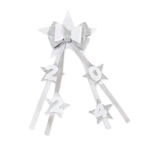 Brilhe como uma estrela no próximo Ano Novo com a nossa deslumbrante presilha estrela prateada 2024. Com tirinhas decoradas com o número 2024 e todo o encanto do glitter, esse acessório é perfeito para adicionar elegância e festividade ao seu visual de Réveillon.