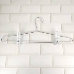A presilha de cabide feita em poliestireno, um plástico resistente e durável que suporta o uso frequente para manter saias, calças, shorts, calções, bermudas, lingeries e outras peças de pequeno porte presas ao cabide, evitando que deslize ou caia, mantendo a roupa no lugar, organizada e livre de rugas no momento do armazenamento ou transporte da roupa. É usada em guarda-roupas, lavanderias e loja de roupas.