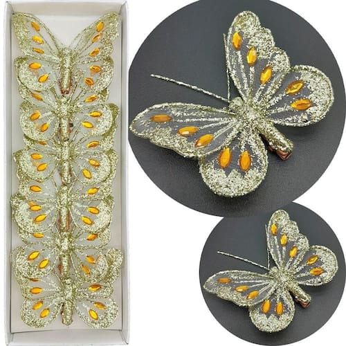 Prendedores Enfeite Borboletas de Natal 8cm!Deixe sua decoração natalina ainda mais charmosa com essas lindas presilhas em formato de borboleta. Perfeitas para usar na árvore de Natal, guirlandas, arranjos, mesas ou embrulhos de presente