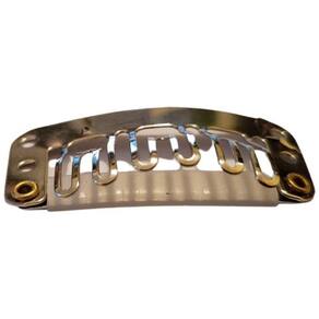 Presilhas em metal com revestimento emborrachado que proporciona firmeza quando colocada no cabelo evitando que a mesma saia de posição durante a utilização, as presilhas já vem com as furações necessárias para a confecção.
