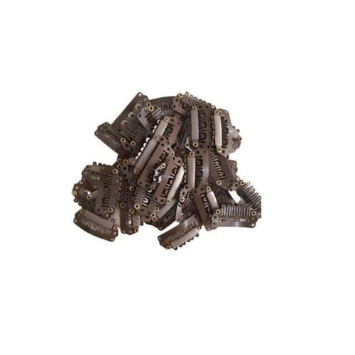 Kit com 10 Presilhas para aplicação de alongamento aplique Tic Tac Presilhas em metal com revestimento emborrachado que proporciona firmeza quando colocada no cabelo evitando que a mesma saia de posição durante a utilização , as presilhas já vem com as furações necessarias para a confecção. Pacote : 10 unidades Cor : Marrom Tamanho : 32mm x 15mm Marca: C&C Shop Ean: 8910062008024